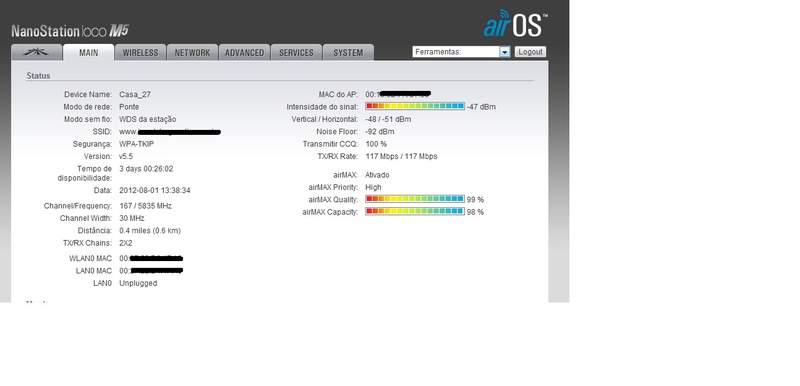 Segue prints das telas para vermos as reais diferenças, vale lembra que não estou postando nada contra os rádios UBNT gosto muito destes radio, mas Mikrotik é sem sombra de duvidas superior.