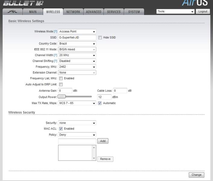 a ultima foto que e com um nano m2 tem um cliente com taxa de 54 / 0 pq nao estava conectado e eu tive que altera umacoisinha nele que tinha pos estou mudando a senah de tudo na minha rede