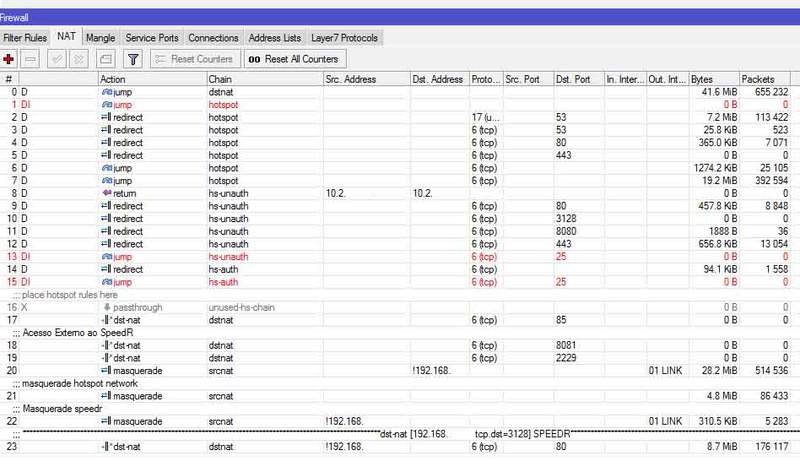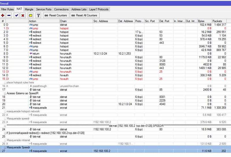 Boa tarde pessoal, vou postar as regras que uso, e gostaria, se alguém puder, da ajuda de vocês. Acredito que não está configurado redondinho meu Speedr. Seria muito grato que me tirassem esta dúvida. No Speedr, uso TPROXY WAN, e desabilitado INTERCEPTAR TRÁFEGO FTP, em controle de acesso consta a rede.