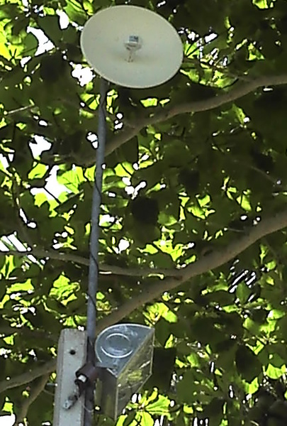- "Ps.: A princípio, o enlace ficaria sem obstrução alguma, a visada seria 100%. Acontece que por segurança e comodidade, resolvi instalar o AP na minha própria casa e sendo assim, a visada já não ficou mais 100%, pois logo a frente, cerca de uns 40 metros, existem algumas árvores que podem estar influenciando um pouco nessa visada. (Também estarei anexando imagens dessas árvores)."