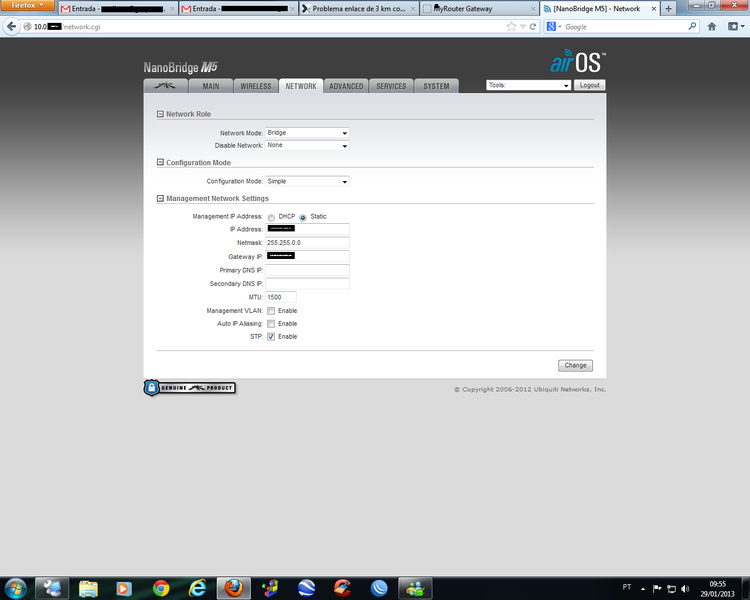 Re: Problema enlace de 3 km com nanobridge de 22dbi