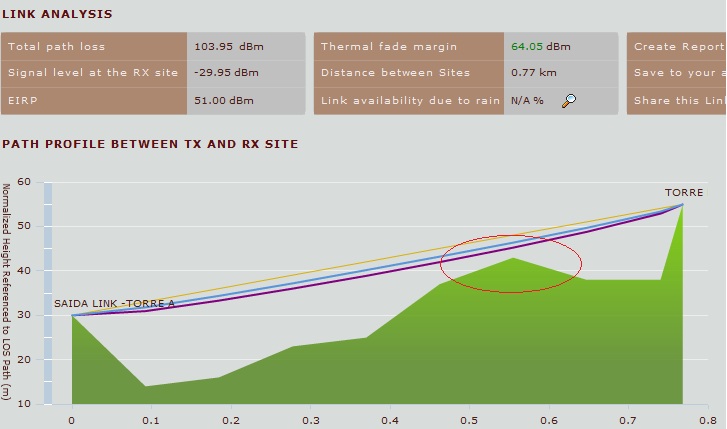 Bom verificando pelo simulador de enlace, existe radiovisada para estes pontos com torre de 12m Ponto A e 18m a 20m no ponto B.