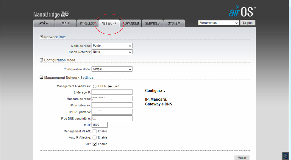 Mas nao eh diferente de como configurar uma nanobridge por exemplo...