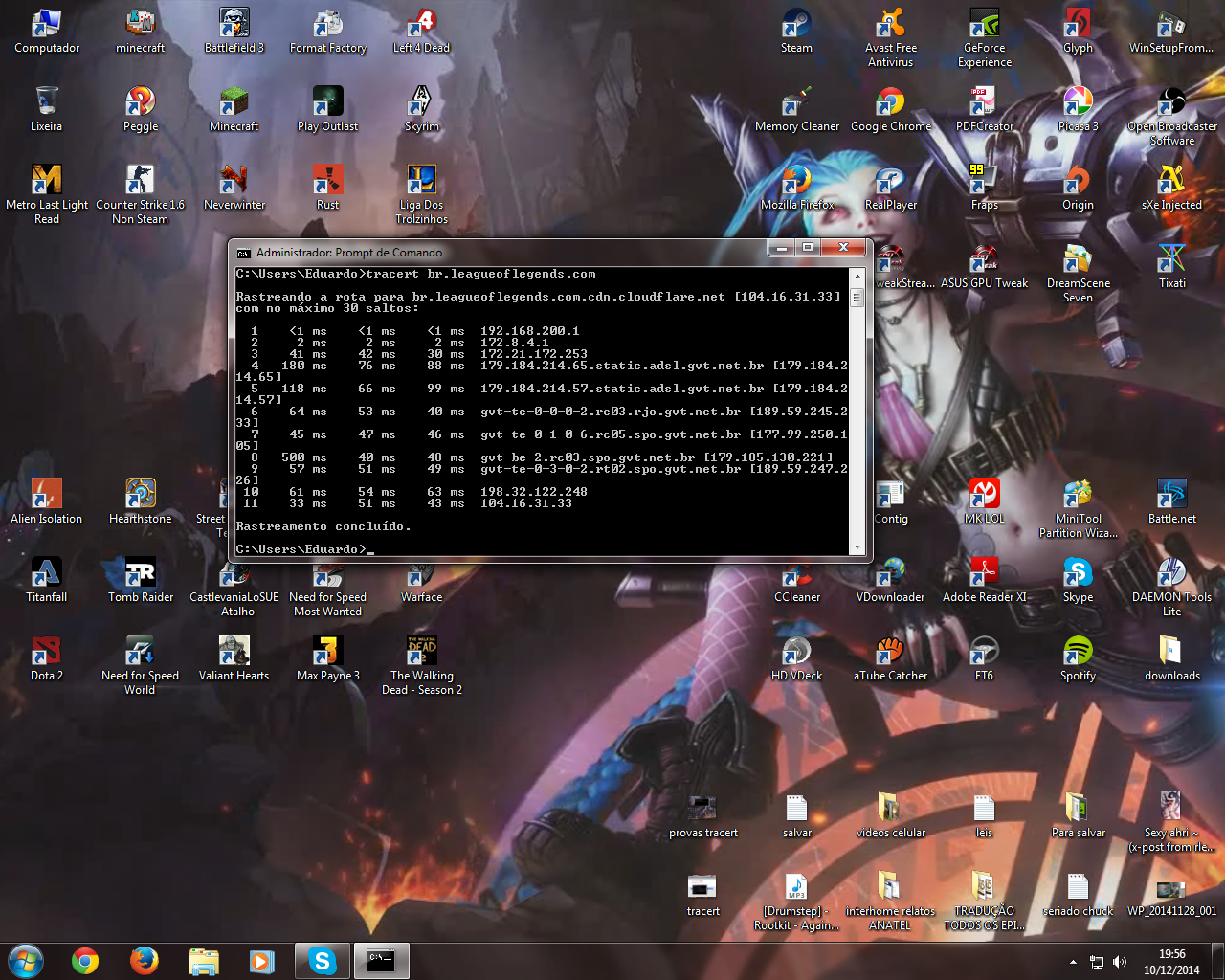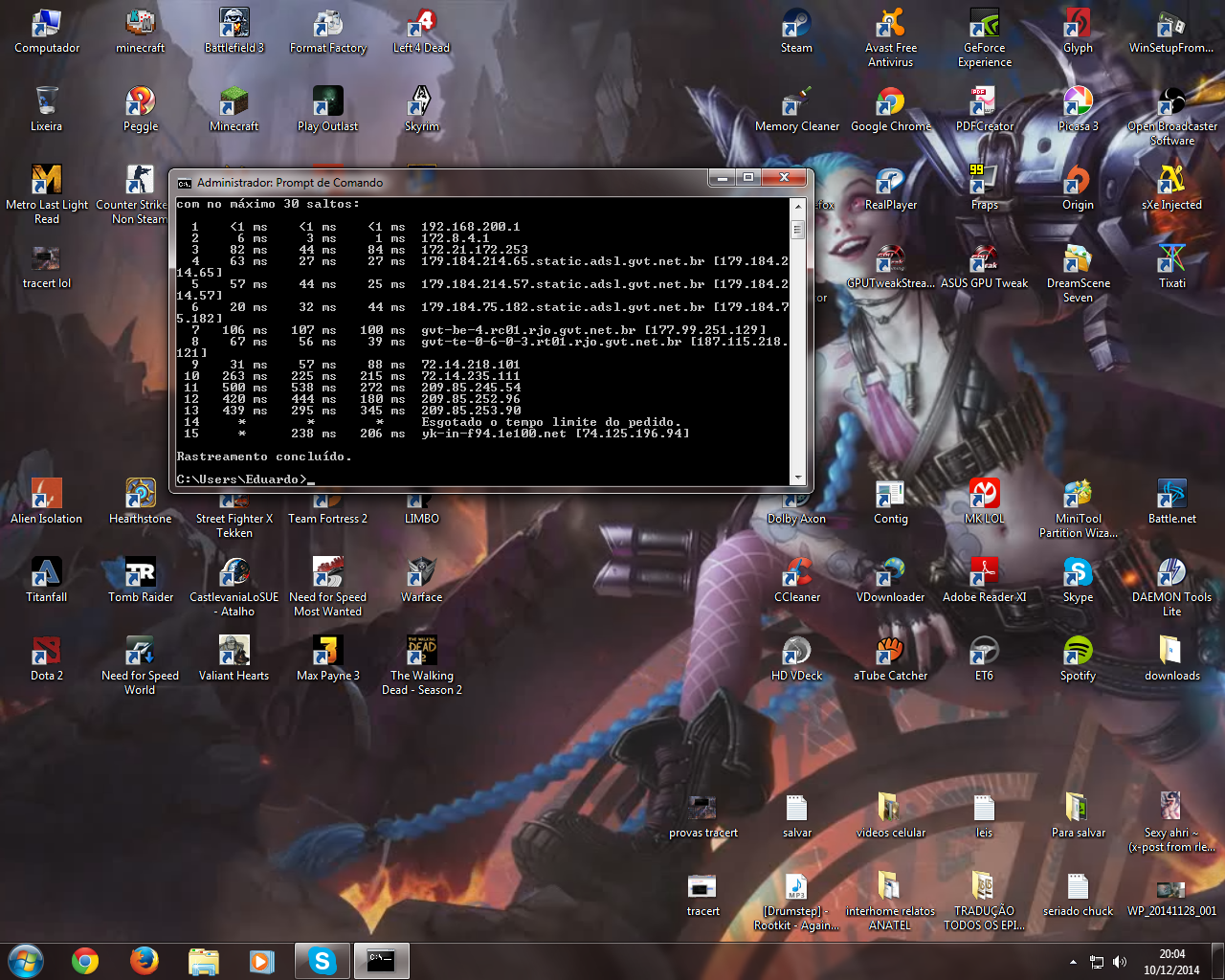 amigo como vc pediu esse e o tracert pro jogo em questao oque jogo mais mas em outro jogos fica alto tbm direto Anexo 56259