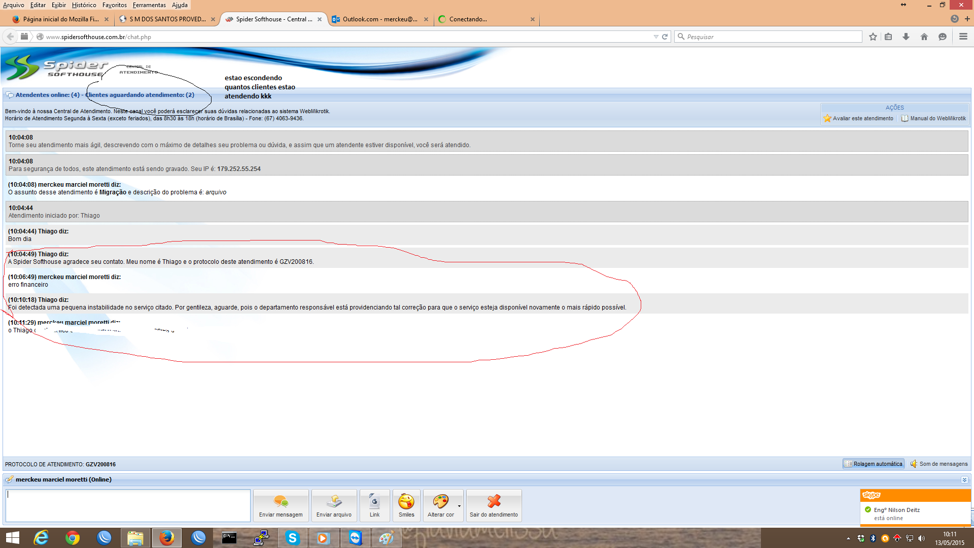 Mas de noite após as 22hs as duas estavam permitindo acesso a central do cliente.