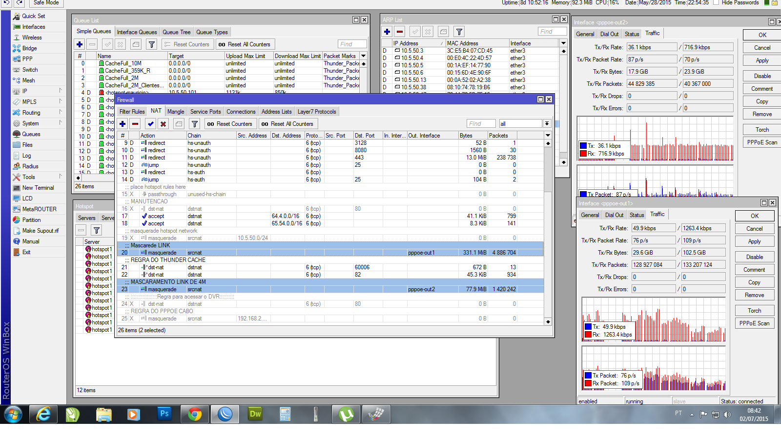 Mascared os dos links agora como deixei a faixa 10.5.50.0/24 para o link 1 que é o pppoe1 entra no thunder agora a faixa 192.168.0.1/24 que está no pppoe2 nao entra.