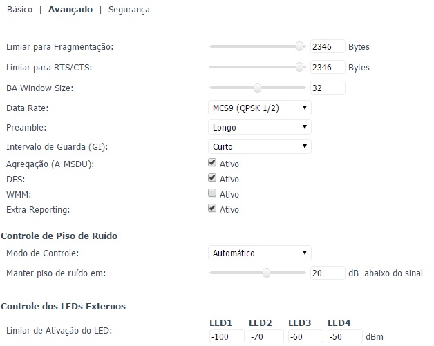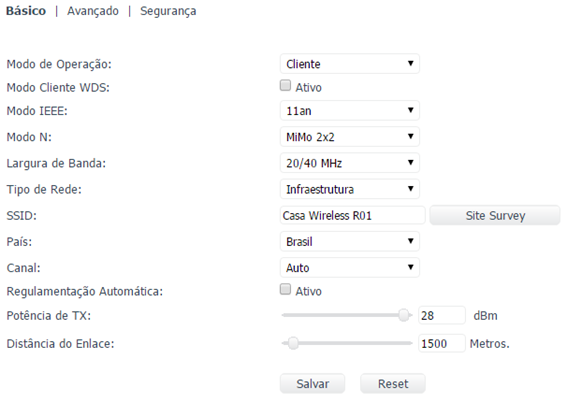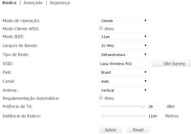 OBS: Se possível verificar o Site Survey e procurar um canal pouco utilizado e de preferencia acima de 5735 onde é possível setar a potência em 18dBm.