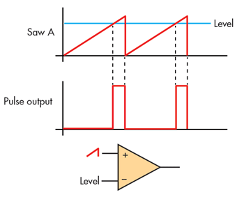 O circuito tradicional pega as 2 tensões e compara antes de jogar no comparador que vai ter a dente-de-serra na estória