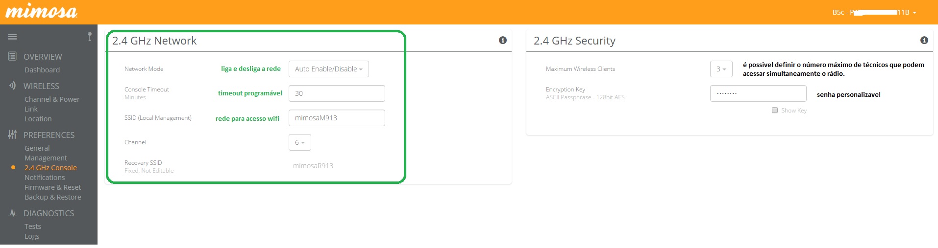 Outro detalhe interessante desse rádio, é que voces podem acessar o equipamento por uma interface wireless 2.4ghz presente no hardware do equipamento.