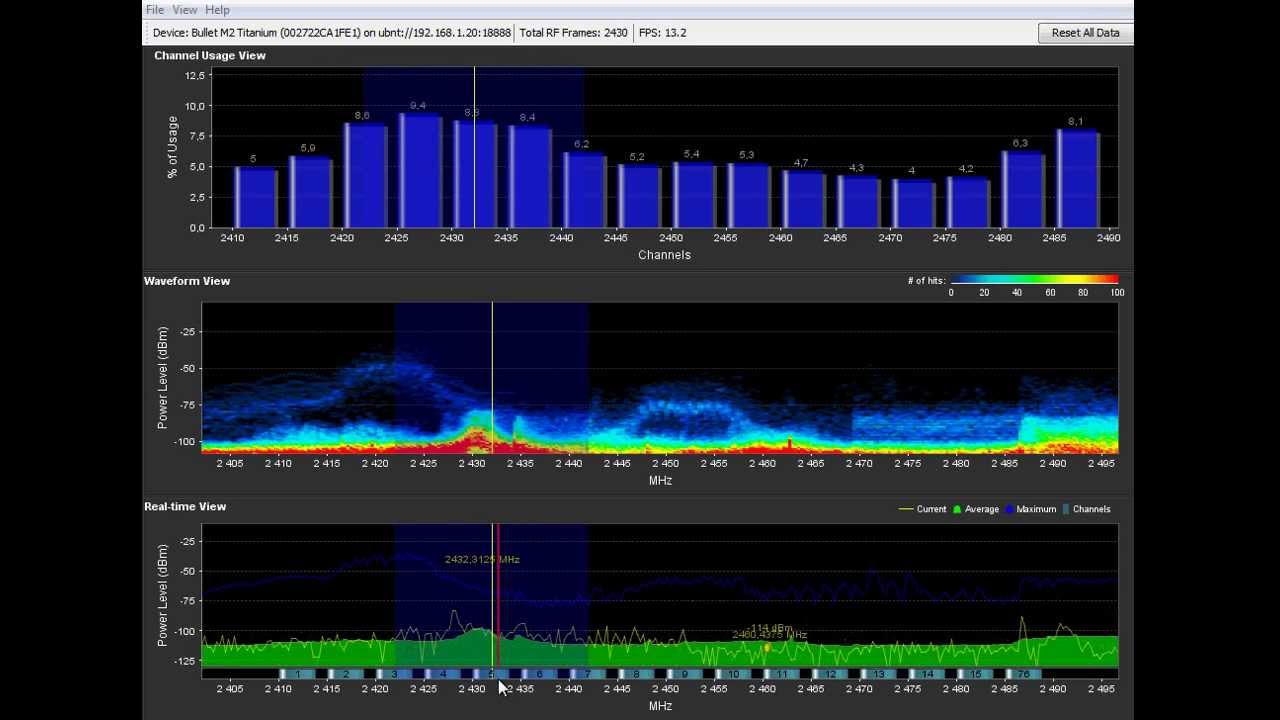 A UBNT está ajudando muito colocando ferramenta tipo o AirView, ele mostra bem a taxa de ocupação do canal, que é o que ele chama de numero de hits na imagem do meio: