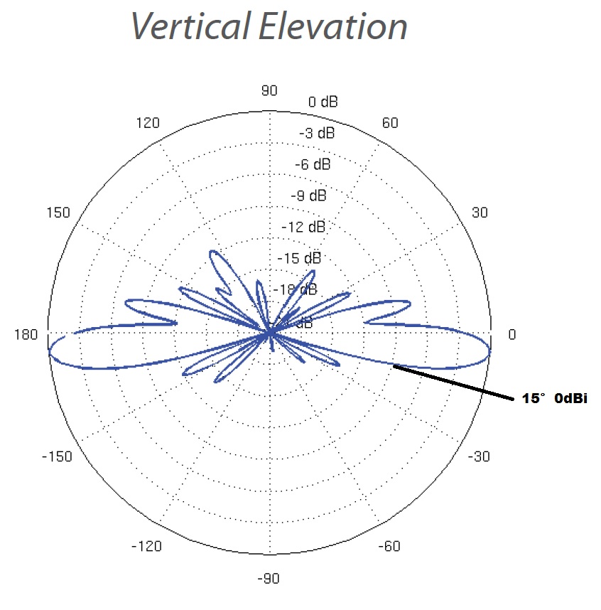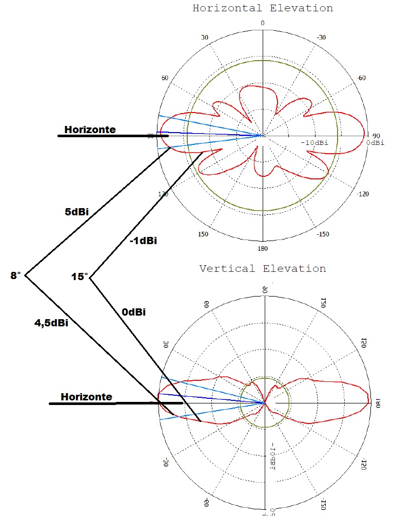 Ela manda pra baixo da linha do horizonte, a uns 8°, a metade da potência, ou seja, ao invés de 7,5dBi, nesse ponto vai ter -3dB, que é dá 4,5dBi de ganho nesse rumo.
