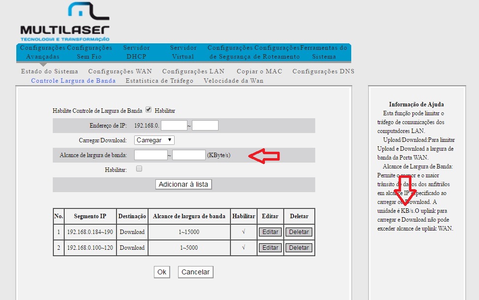 Com isso agora suspeito que a Multilaser modifica firmware DD-WRT, porque isso (Controle de banda escrito "KByte/s") só tinha visto no DD-WRT.