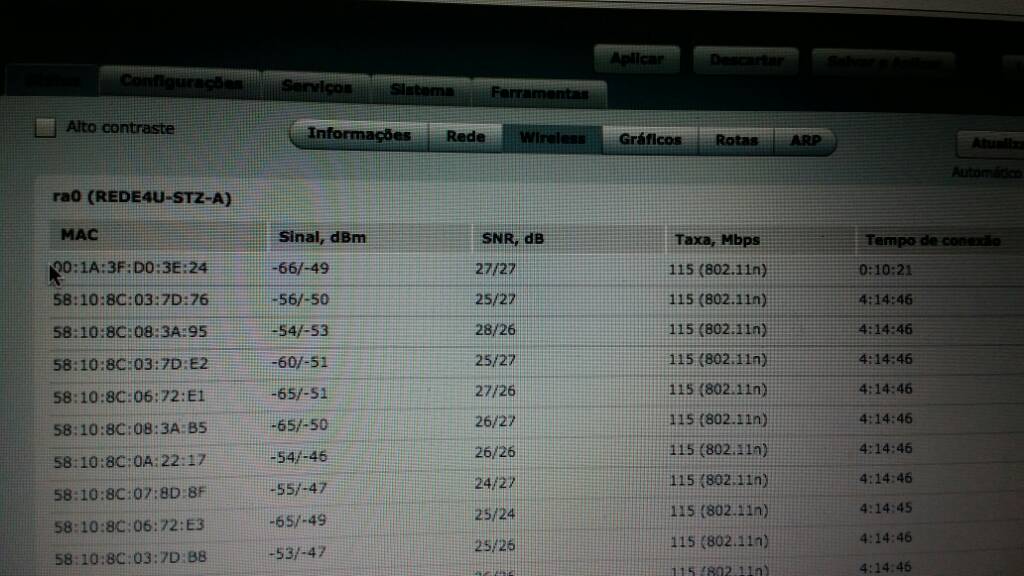 Estava normal, quando foi hoje a antena desconectou e não voltou mais. No AP ela está conectada normalmente, mais na rb não chega.