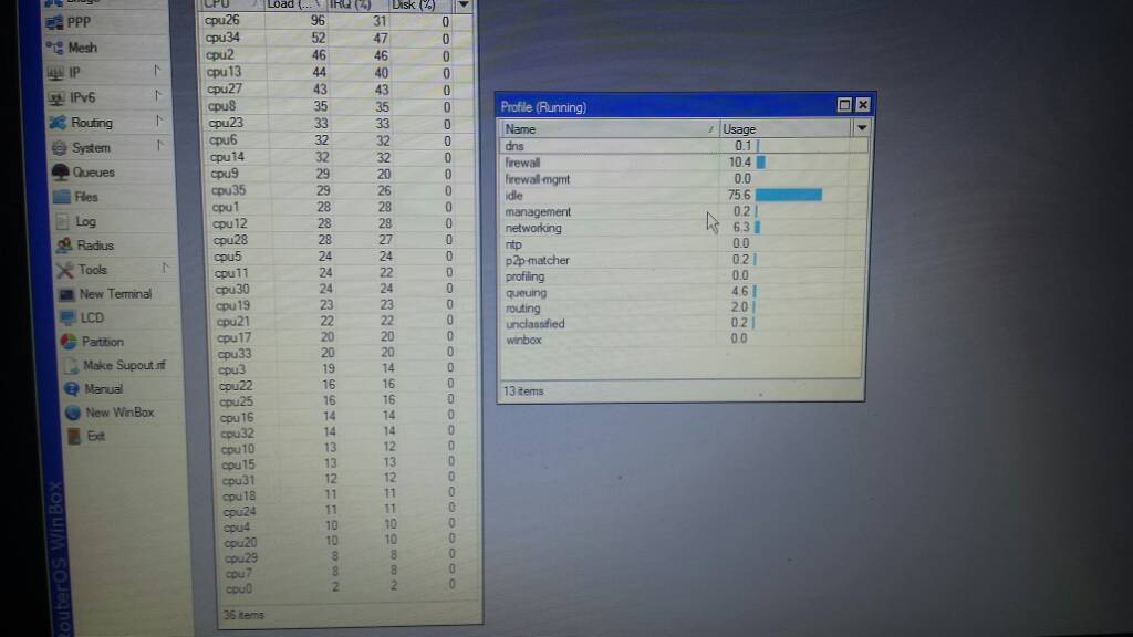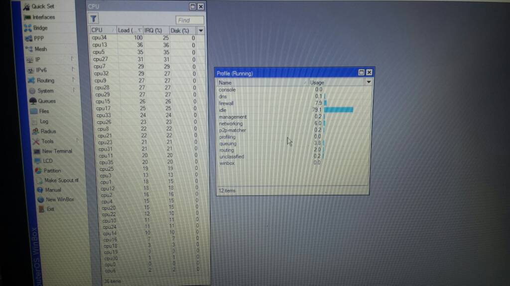 Tem como você tirar uma print do Tools->Profile no mesmo momento em que um número da CCR está em 100%? Só pra gente ter uma ideia. Eu aqui uso só 1 CCR e não tenho carga suficiente na rede para fazer esse teste.