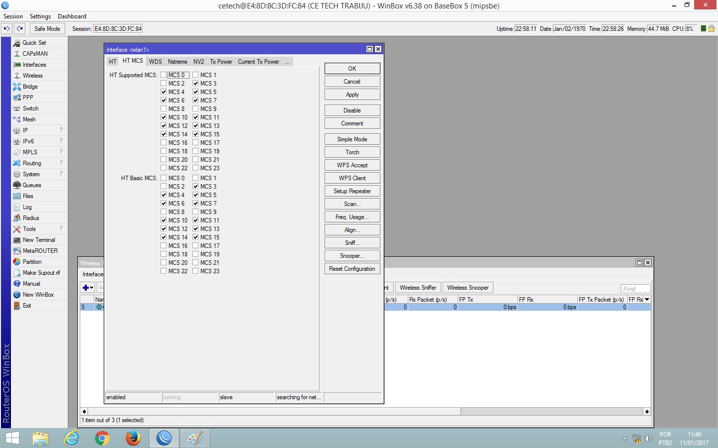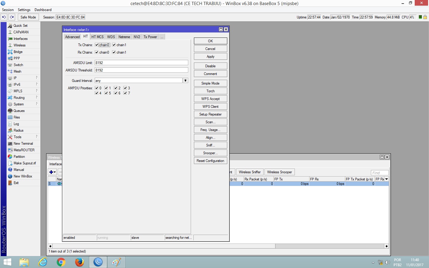 Sim estou usando os que vieram junto com as Dish da UBNT. Estou desconfiando deles também. Segue as configurações do lado da estação.
