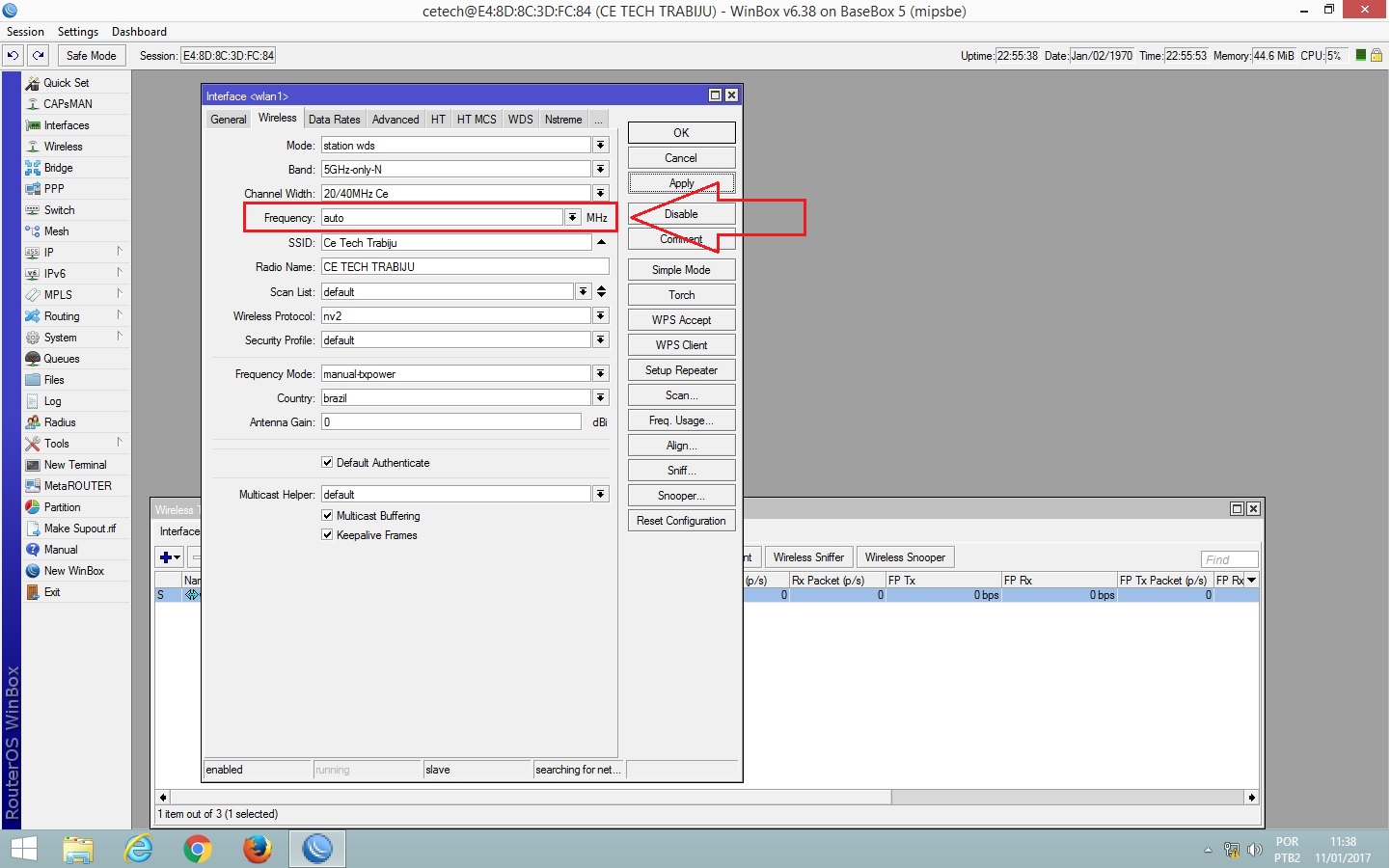 Amigo. Primeira coisa trave a frequência da estação na frequência exata do AP. Isso vai prevenir que a estação fique buscando outras frequências e tendo em vista que é um processo inicial de alinhamento, pode acontecer de ela nunca conectar ao AP devido ao sinal fraco do alinhamento inicial.