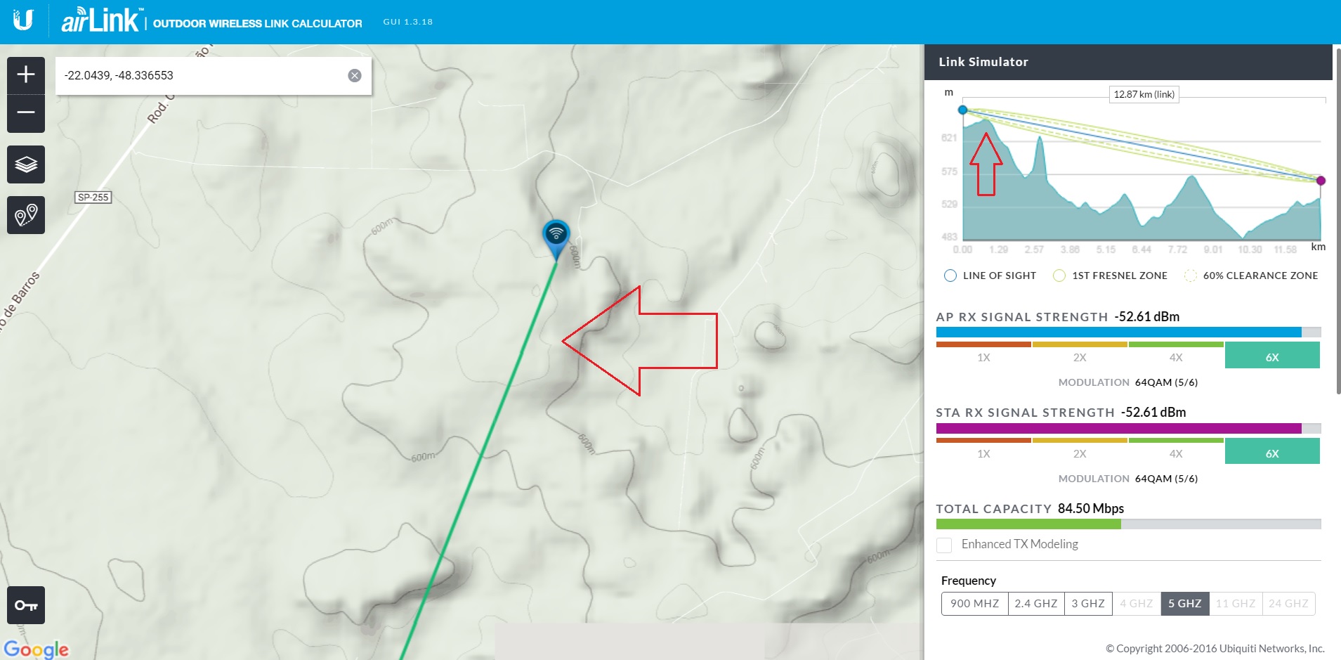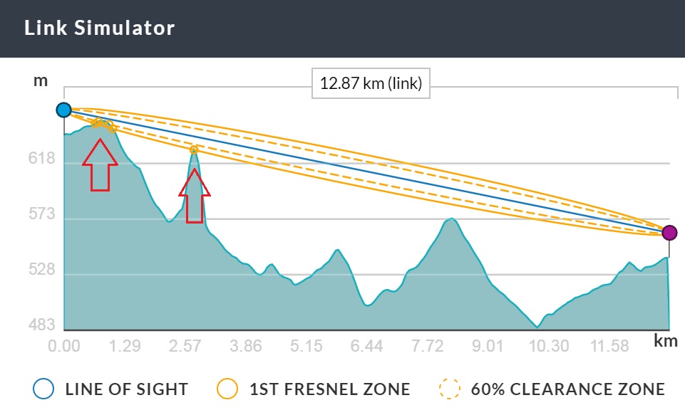 Tenho impressão que vai ter que mover essa torre para a frente desse morro. Ou montar uma repetidora.