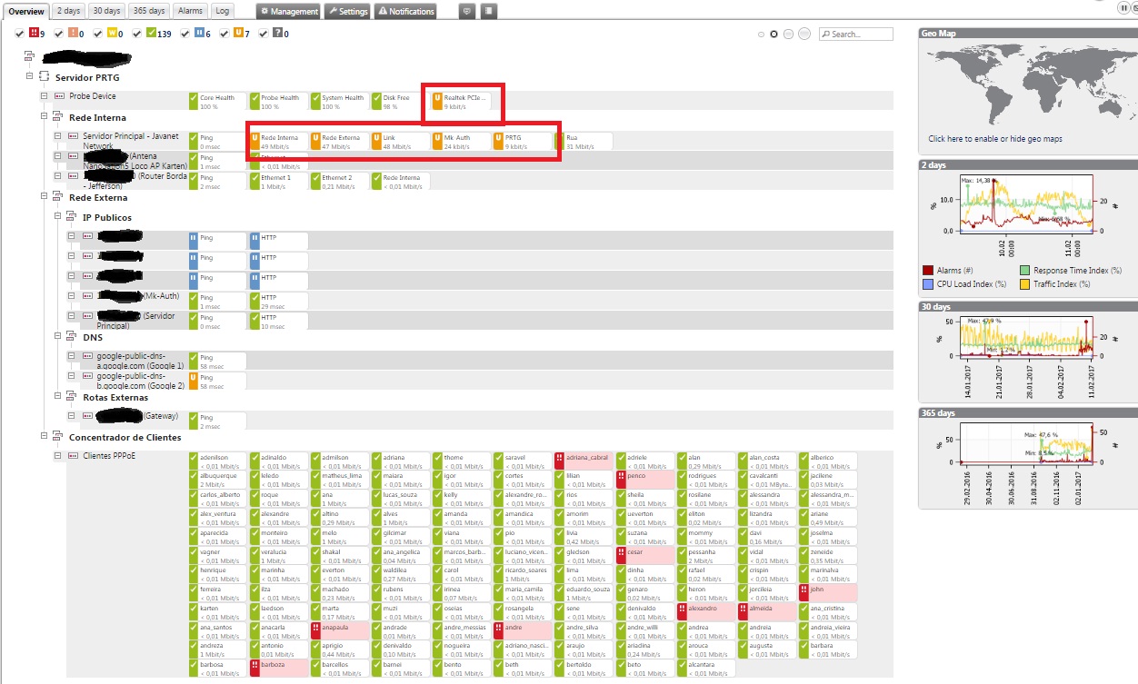 Entenda que com isso ira consumir mais sensor e ter um bom servidor para manter esses processos pq era consumir mais CPU do servidor e trafego da porta de rede do servidor. Eu decidir em usar o ZABBIX pq é uma aplicação Open Source e faz a mesmas funções que uso no PRTG. Mais tarde eu posto os todos os processos e as duas imagens dos dois servidores PRTG e ZABBIX para comparação, Obrigado a todos!