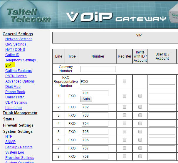 O @eduardomazolini vi ali que tá usando um gateway taitell. Eu tô com um aqui que não consigo fazer ele NÃO ficar caçando (modo Hunting) as linhas. Eu gostaria que ele ficasse com a porta fxo associada a conta sip que é configurada, exemplo, quando eu originar a chamada pela conta sip da porta 1 sempre sair pela porta fxo 1, no meu caso mesmo que eu mande sempre a chamada pela conta sip 1, ele fica mandando pela próxima porta fxo, até completar o ciclo. Sabe se o taitell tem como configurar assim?