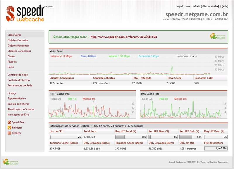 Olha amigos estou usando o cache desde a versao 0.7 e ja estou com a versão 0.8 intalada e so tenho a parabenizar a equipe Speedr que sanou minhas duvidas muito rapidamente , estou no aguardo da versão final segue print do cache em funcionamento