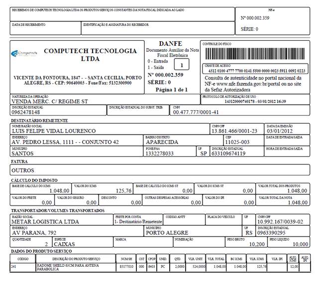 Não significa absolutamente nada a aquisição por parte da AZlink a compra de um radome shield a comprovação de ser uma cópia, lamentamos que uma DANFE seja exposta em um fórum aberto.