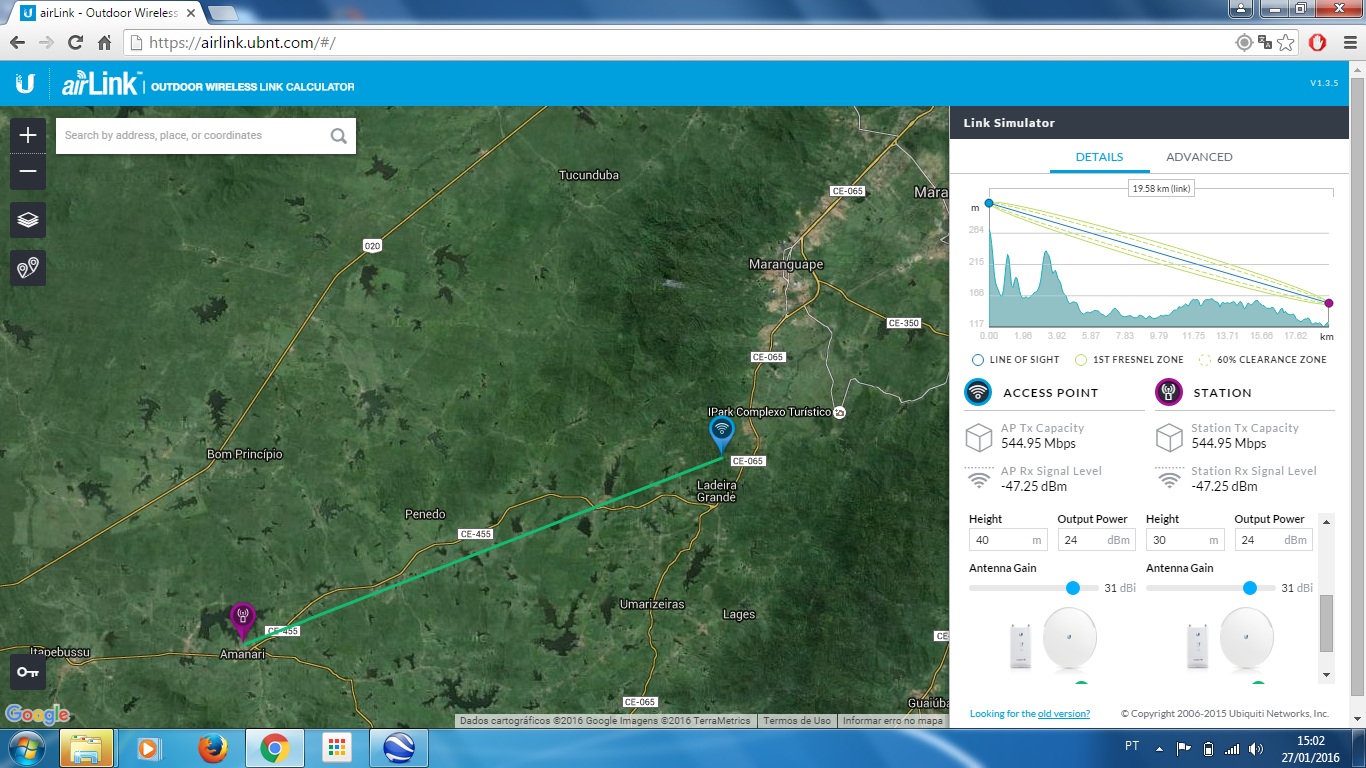 Nao importanto o radio acima citado, todos mostrao uma boa taxa de dados com tempo limpo e sol rachando passo de 30km dependendo do clima e independente da visada ele modula nao tem boca.