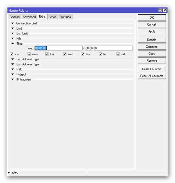 add chain=postrouting action=mark-packet new-packet-mark=Madrugadao passthrough=yes time=1m-7h,sun,mon,tue,wed,thu,fri,sat