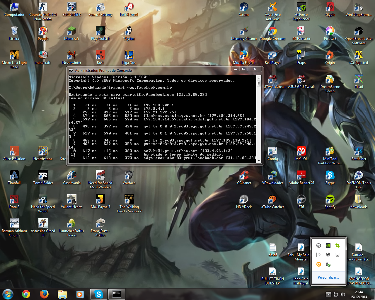 Ola galera to aqui de novo para mostrar a print desse tracert afinal além de tudo temos que ser justos. (OBS minha latencia continua alta)Anexo 56314.