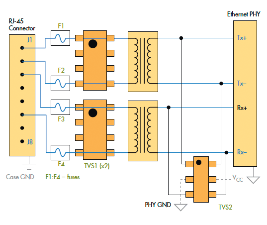 O modo "completo" de ligação dele seria como esse TVS2 no canto inferior direito aqui: