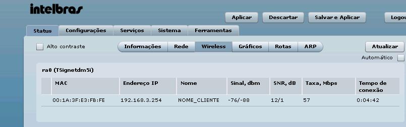 Segue algumas telas dos equipamentos, (torre e cliente).
