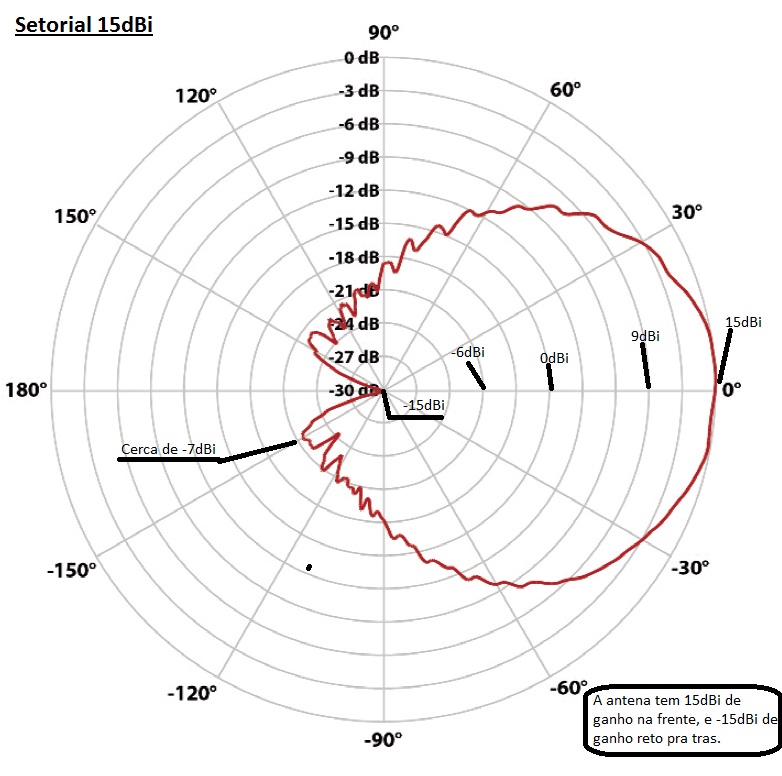Mas olha o ponto que marquei na imagem onde tem -7dBi de ganho, está nas costas da antena, se esse radio está na verdade a 22dBm, com "ganho" de -7dBi temos 22 + -7 = 15dBm EIRP.