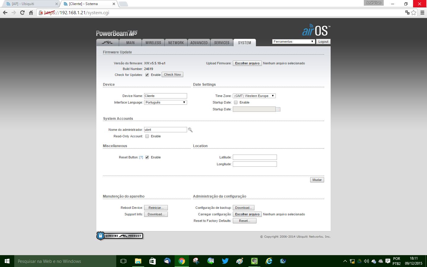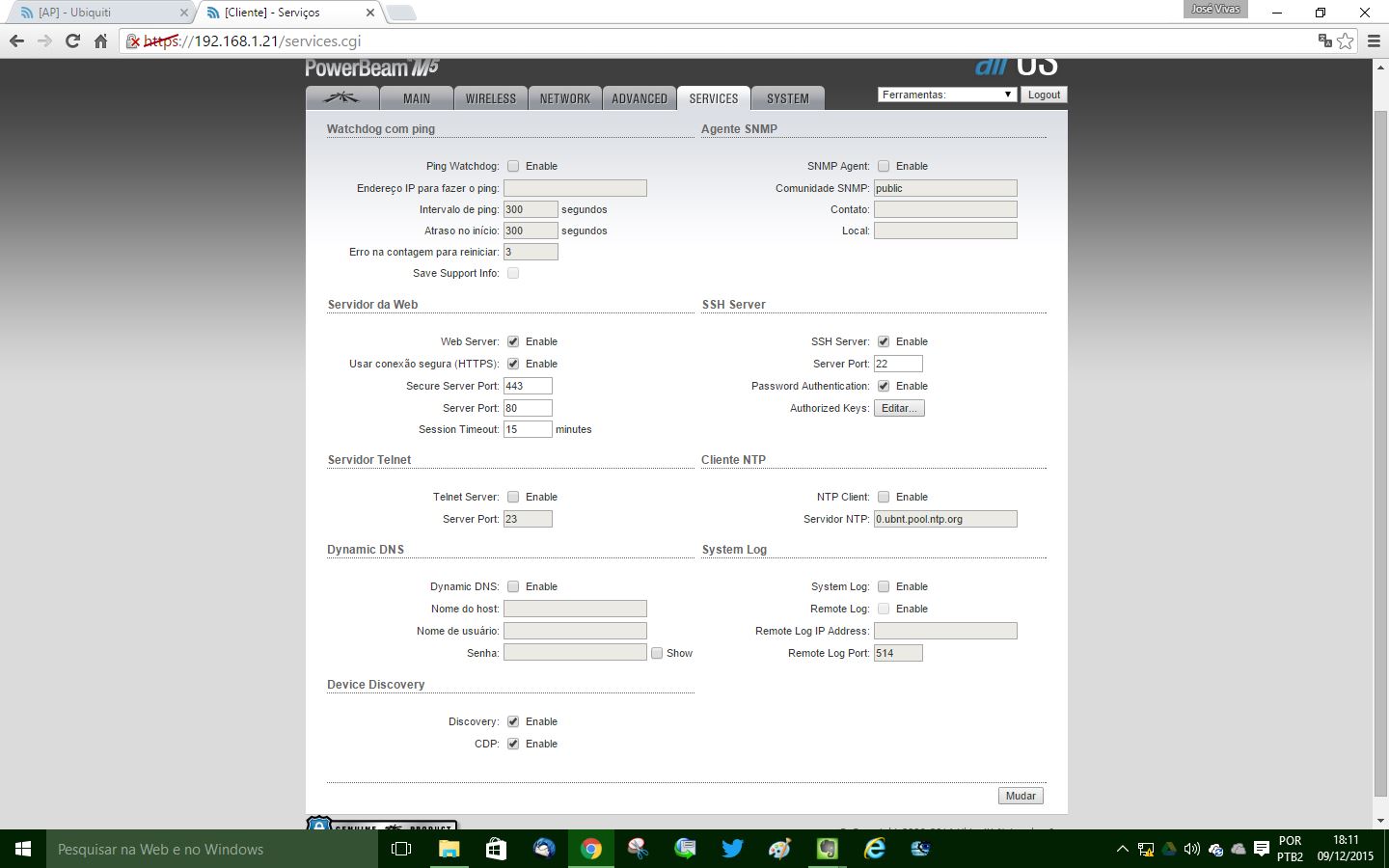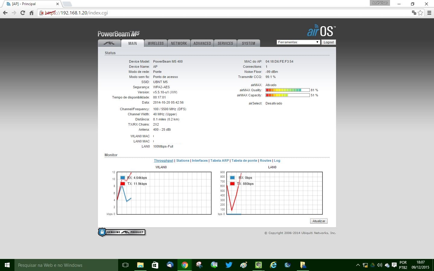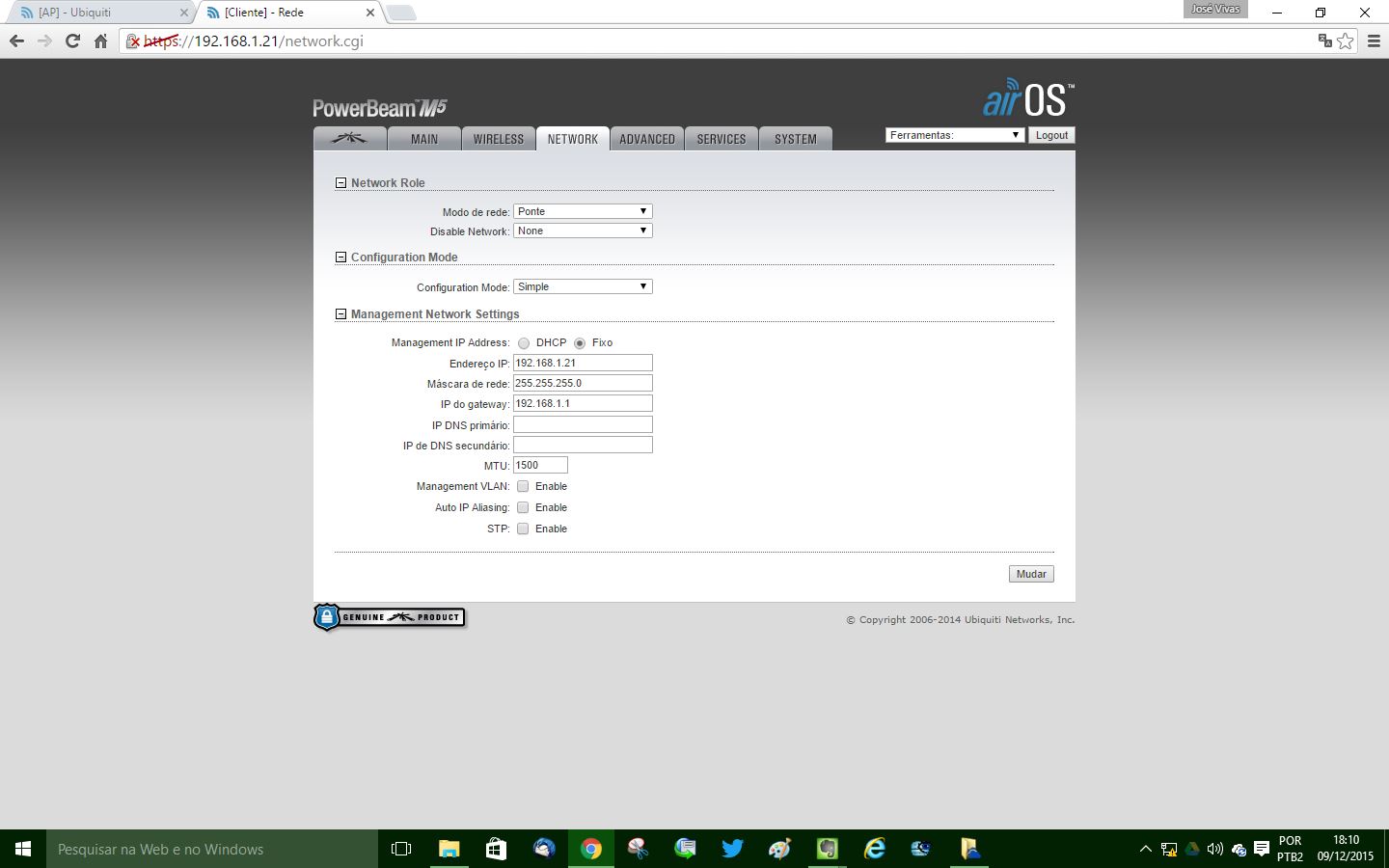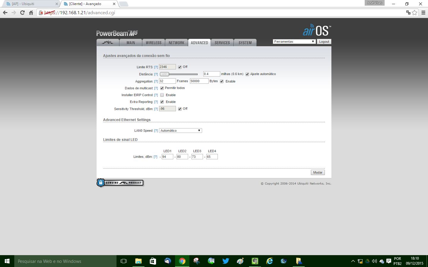 Segue os print's das configurações que eu realizei,(Lembrando que os prints foram tirados usando o equipamento dentro de casa, e que a distancia do ponto a outro é de aprox 700 metros).
