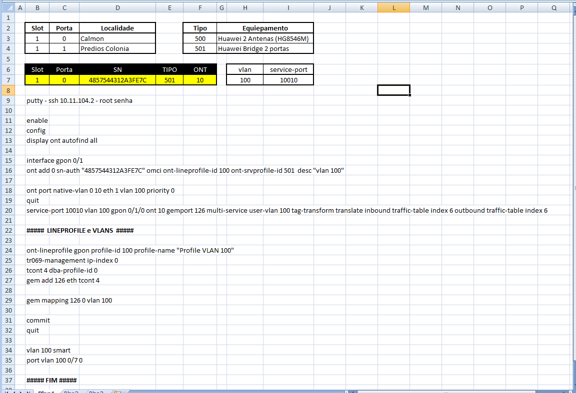Rapaz, te dizer que tem como automatizar isso. Dá para fazer um template onde o técnico só coloca as informações dos campos em amarelo e já vai direto na olt e configura.