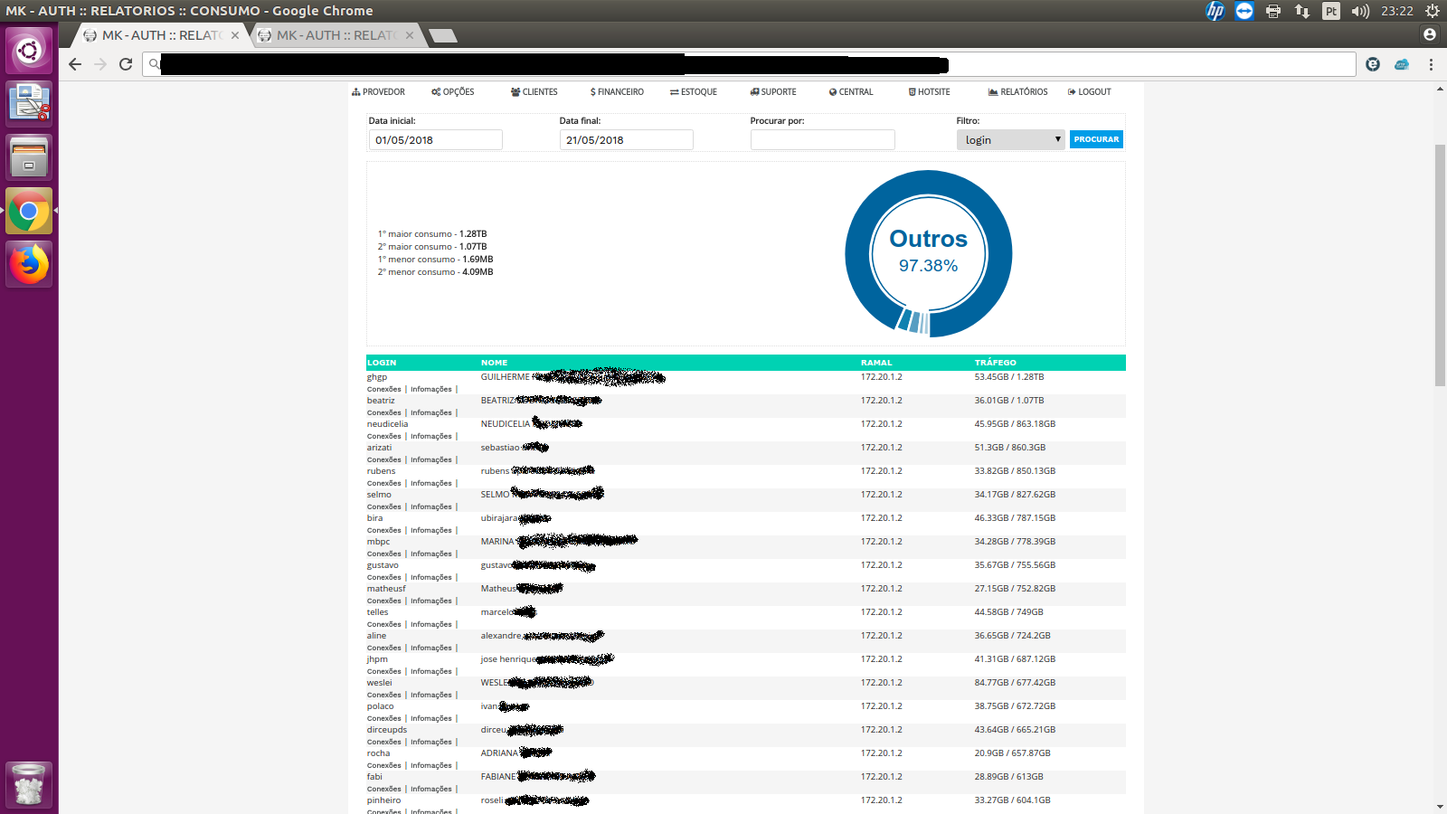 O mês ainda não terminou, e vejam o consumo dos clientes que mais utilizam a rede!