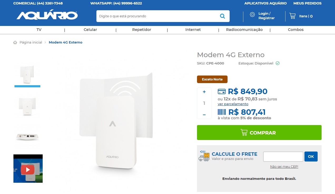A Aquário por sua vez é famosa por investir em linhas de equipamento caras e sem nada a ver. Repetidores de sinal de celular (dos mais fracos) não saem por menos de R$1.000,00.