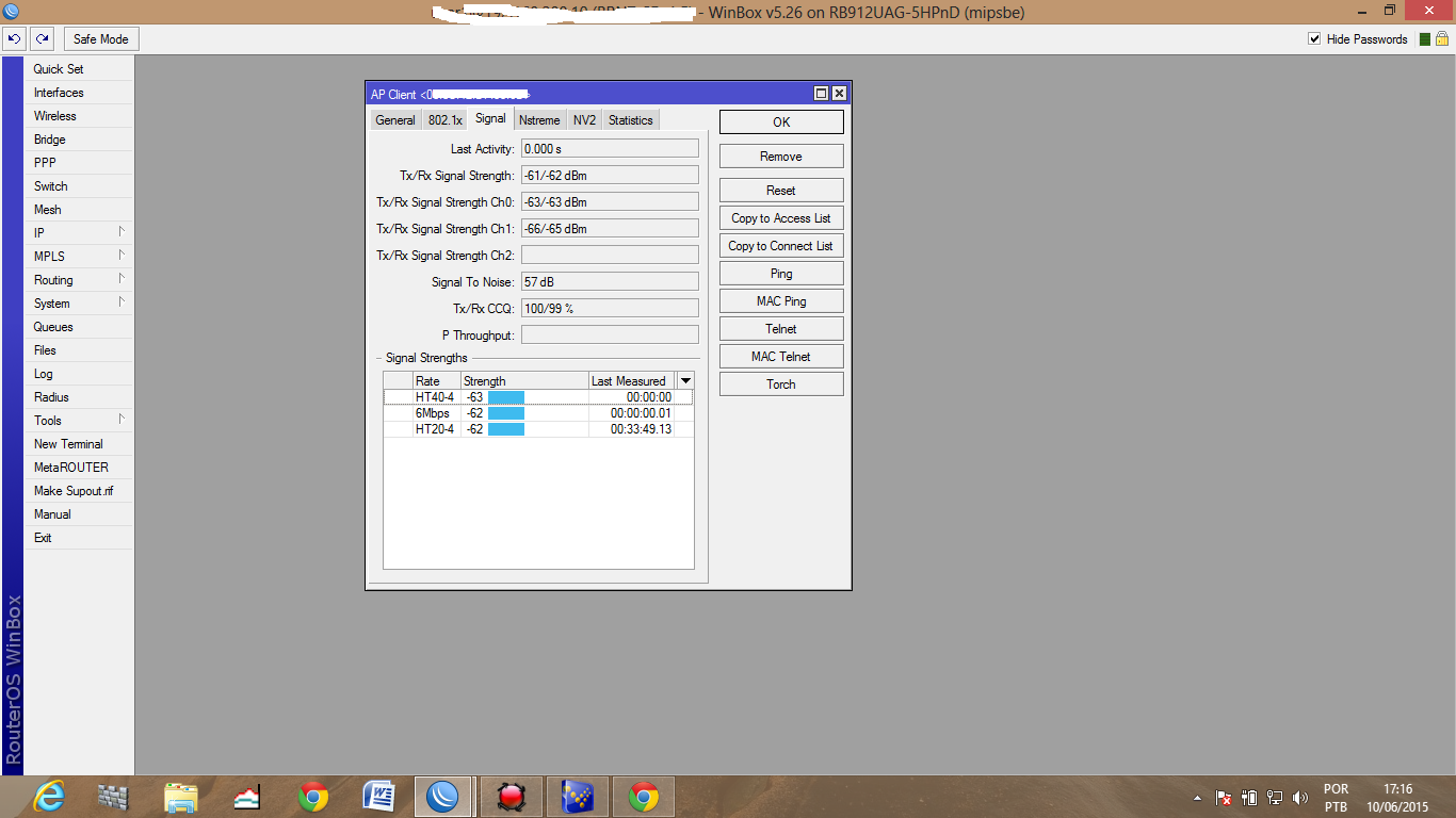 Parabéns! Tenho uns links com rb912 porém com umas antenas "Réplicas da dish", tenho sinais tipo -51 em 44km porém ccq muito ruim na casa de 60% 70% e só consigo througput na casa dos 70Mbs udp receive, ao testar tcp fica uma me*** , na época o orçamento era apertado comprei antena que custava 1/3 da dish 34, no futuro pretendo troca-las, por dish e vou ter um aumento de mais de 40mbs no link.