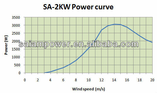 Um que promete 2000W vai fornecer 2000W provavelmente só com vento de uns 12m/s (Metros por segundo, multiploca por 3,6 (Pois a hora de 3600 segundos) pra saber quantos km/h dá, 12*3,6 = 43km/h). E 12m/s, ou 43km/h, é muito vento.