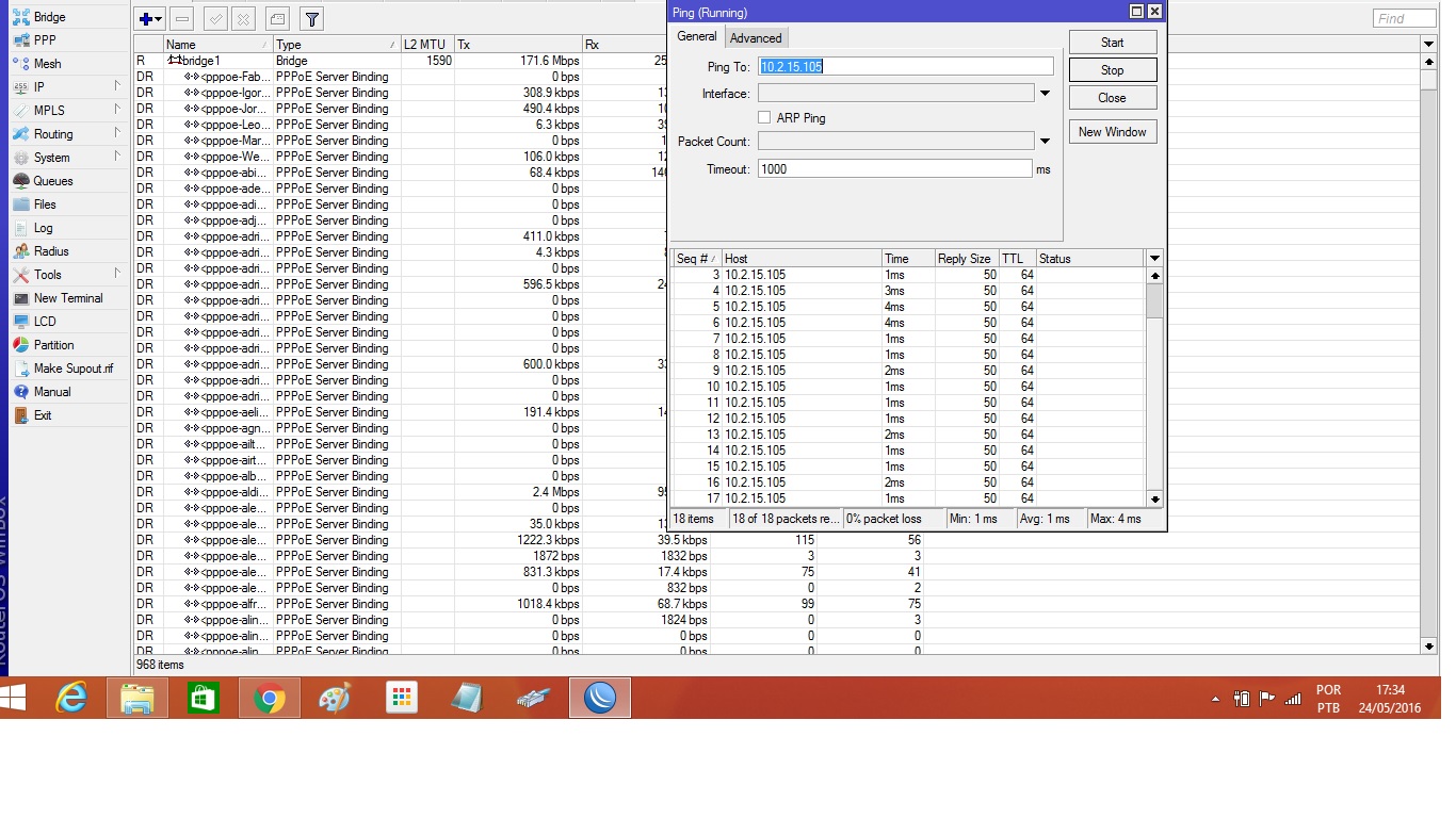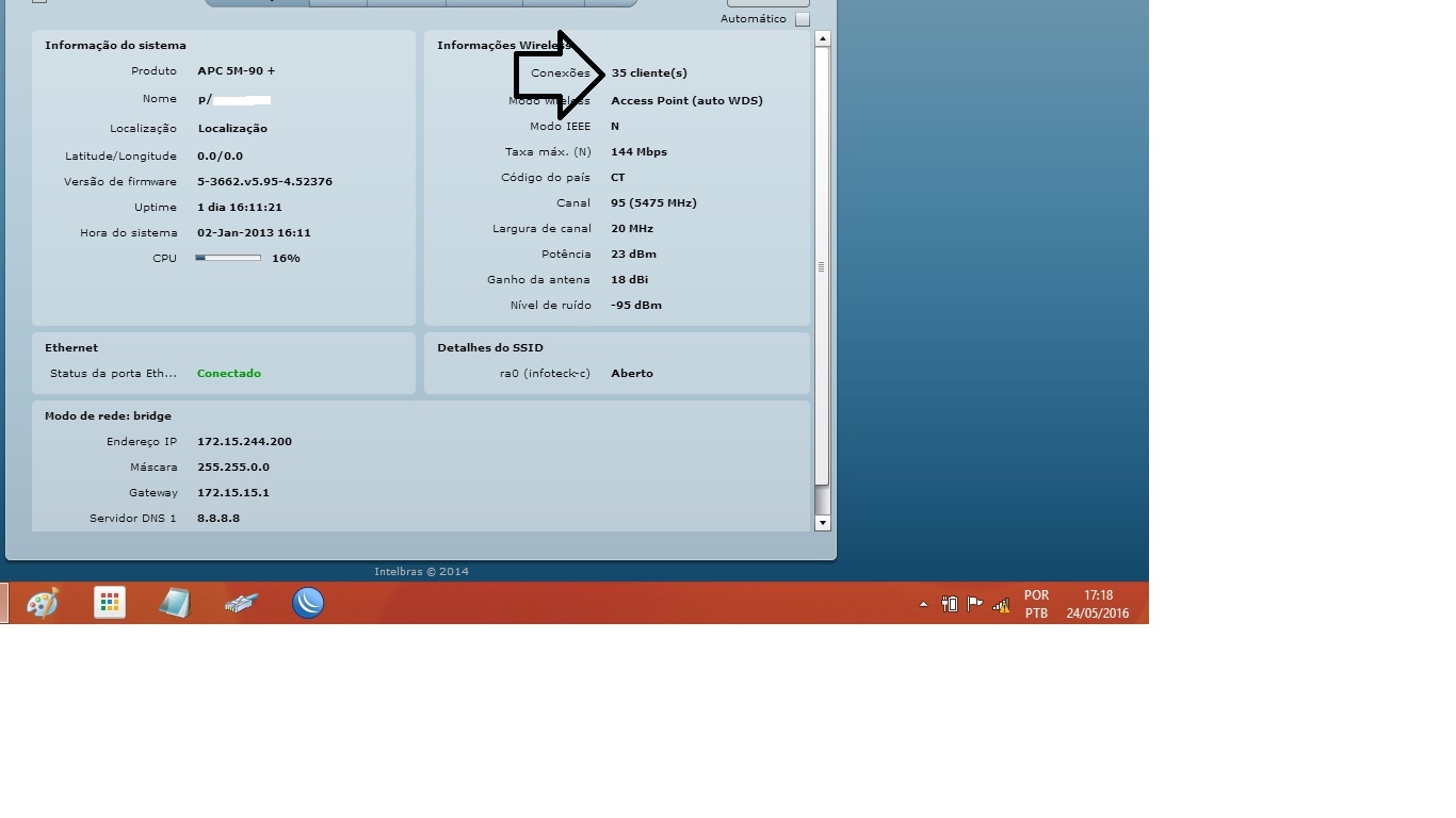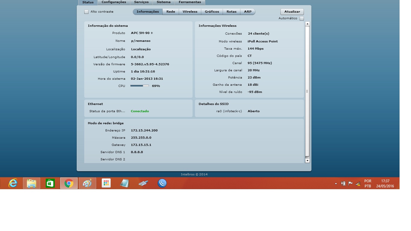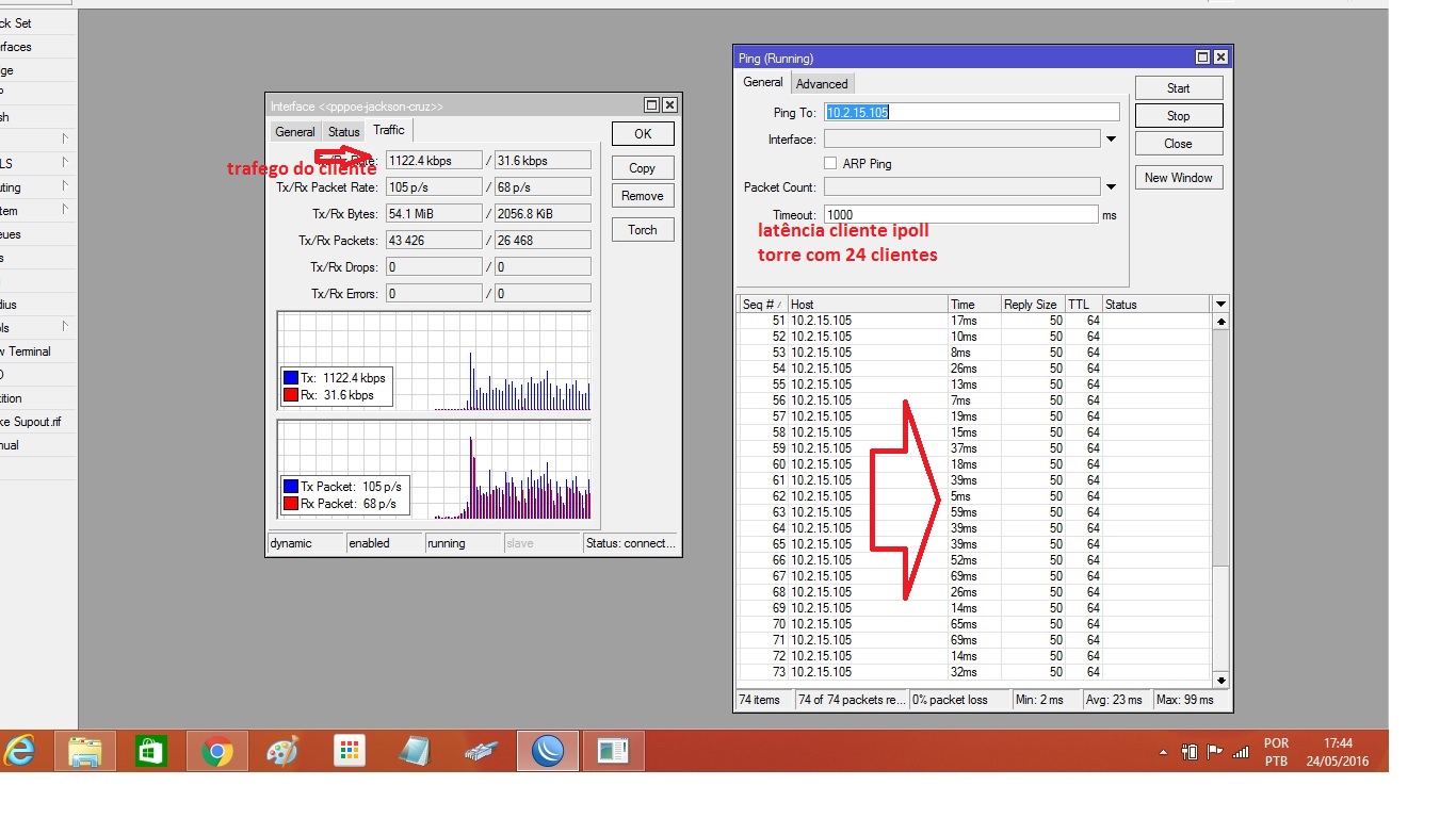 3º print teste do cliente ipoll em uma torre com somente 24 clientes e passando media de 1,5 mega.