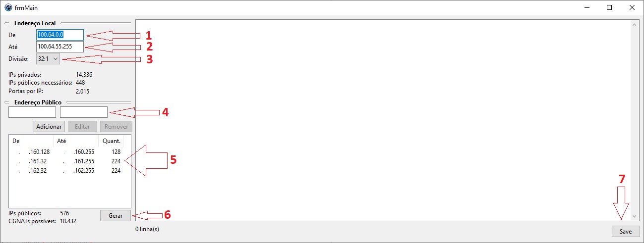 - Endereço Privado: O endereço de rede do bloco CGNAT a ser usado na regra. A quantidade de blocos usada vai depender do campo Divisão.