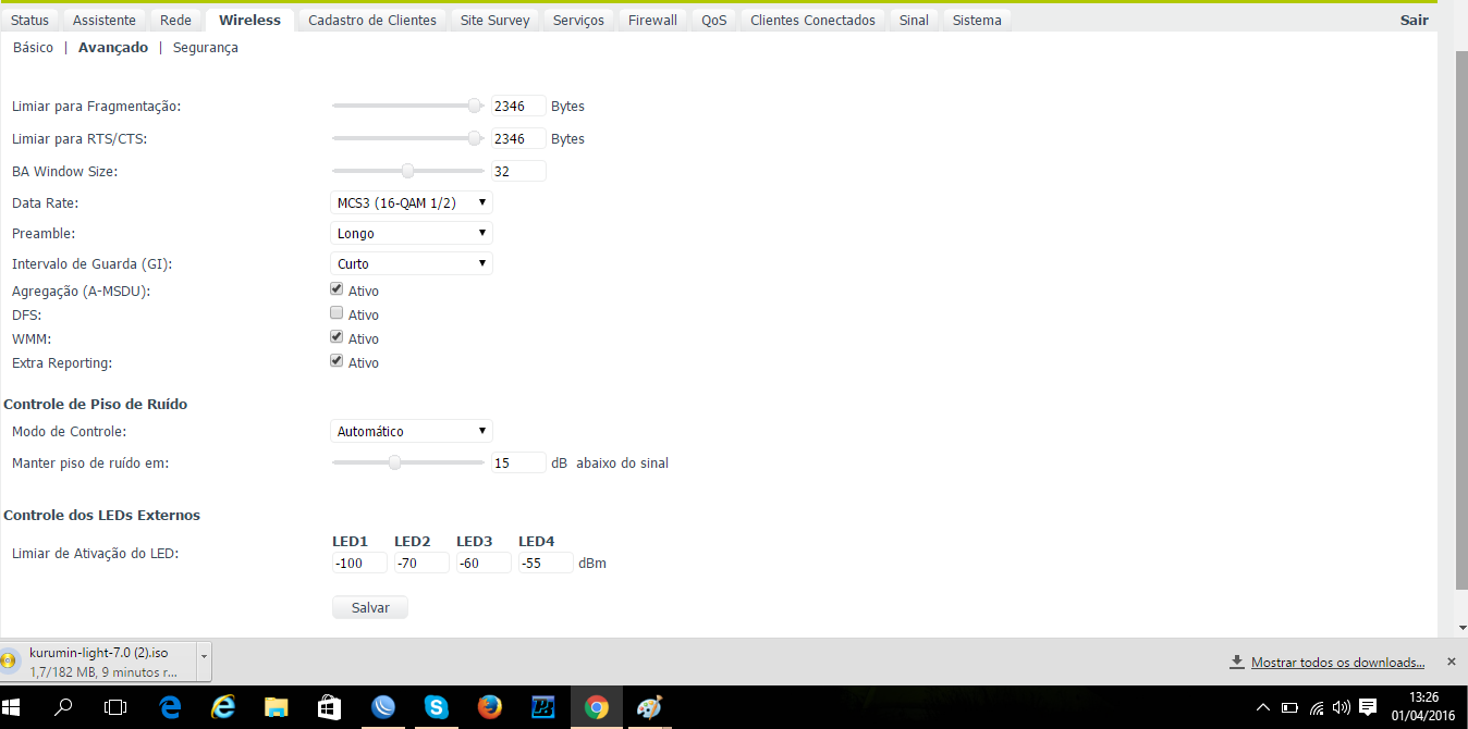 Notei que na imagem sem ipoll o BA Windows size está 64 (Para usar esse equipamento esse seria a melhor configuração) ? No PTMP usamos como 32 essas configuração.