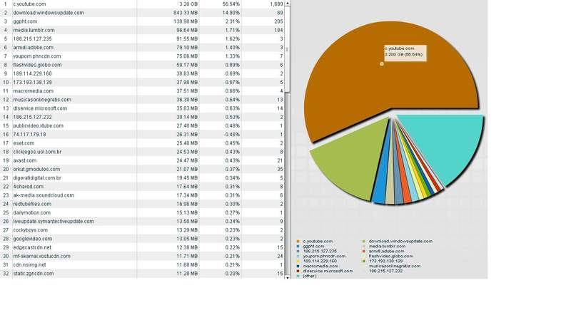 Abaixo segue uma tela, com apenas 8 h de cache ja tinha 56 % de cache no youtube.