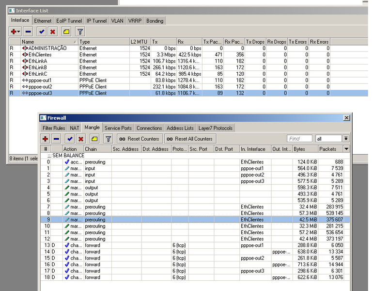 Balanceamento feito numa RB750G com Mikrotik 3.31 instalado