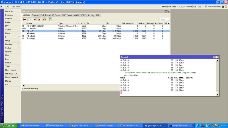 Ola Renan, boa noite, conforme contato com voce, estou reenviando o post, com as fotos e testes do enlace, acredito que houve uma falha no envio hoje pela amanha, a net do hotel as vezes cai, segue as imagens para sua analise, obrigado