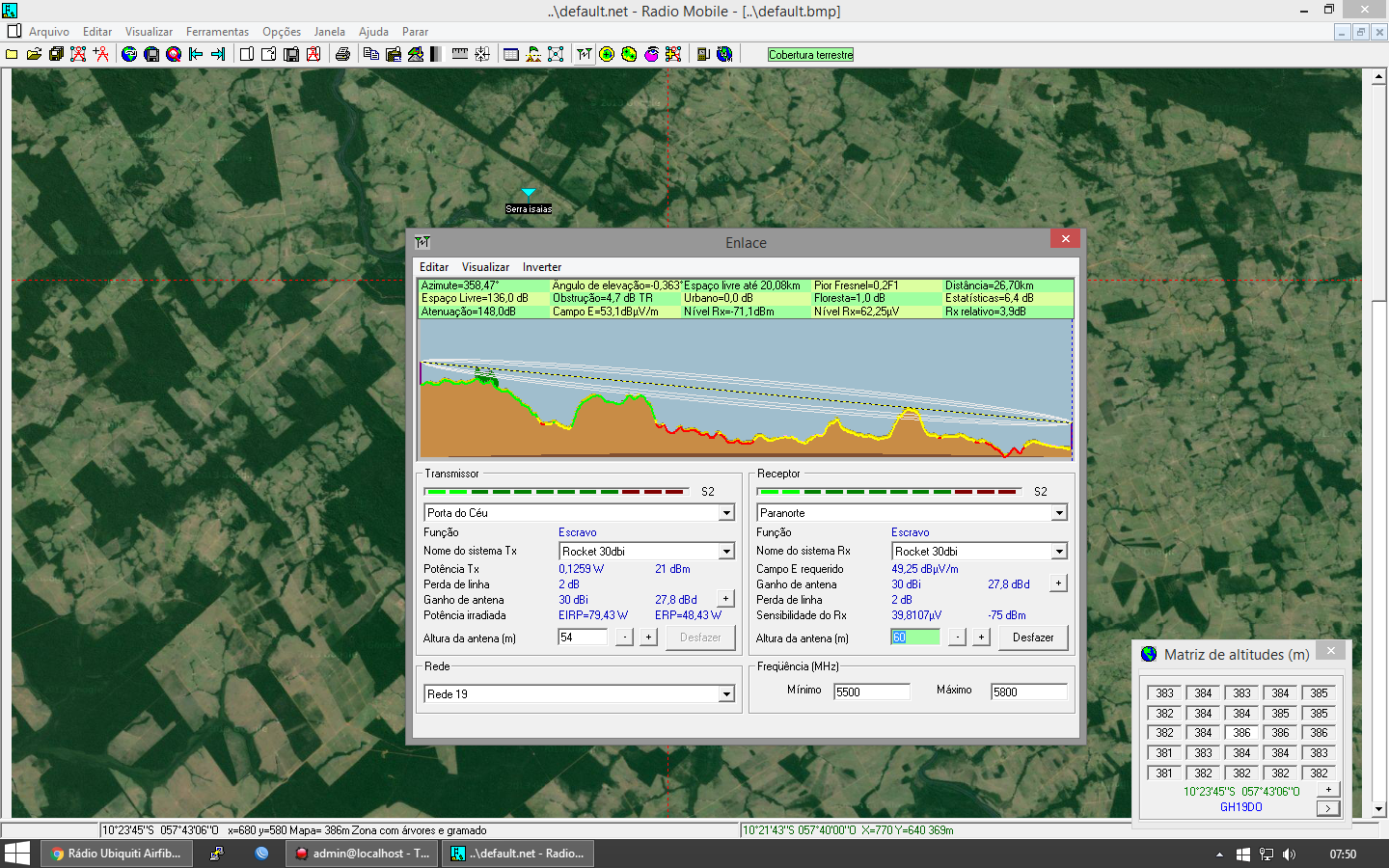 o melhor programa para calcular enlaces longos, e o Radio mobile, ele bem configurado e top, da pra saber a altura da torre, configura o tipo de radio, veja um exemplo, que no earth pensei que dava, mas olha pelo radio mobileAnexo 63859
