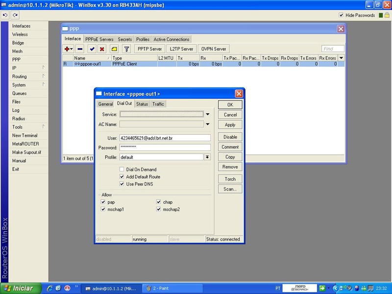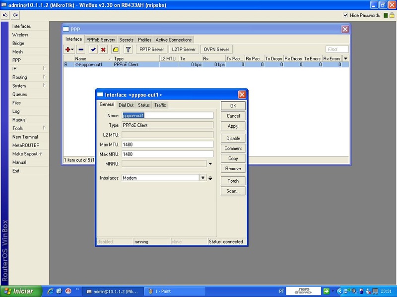 no menu ppp, adicionei pppoe-cliente, e preenchi tudo, o status aparece: Connect. ou seja a mk conectou no modem. Porém eu n consigo navegar, será q falta alguma regra?