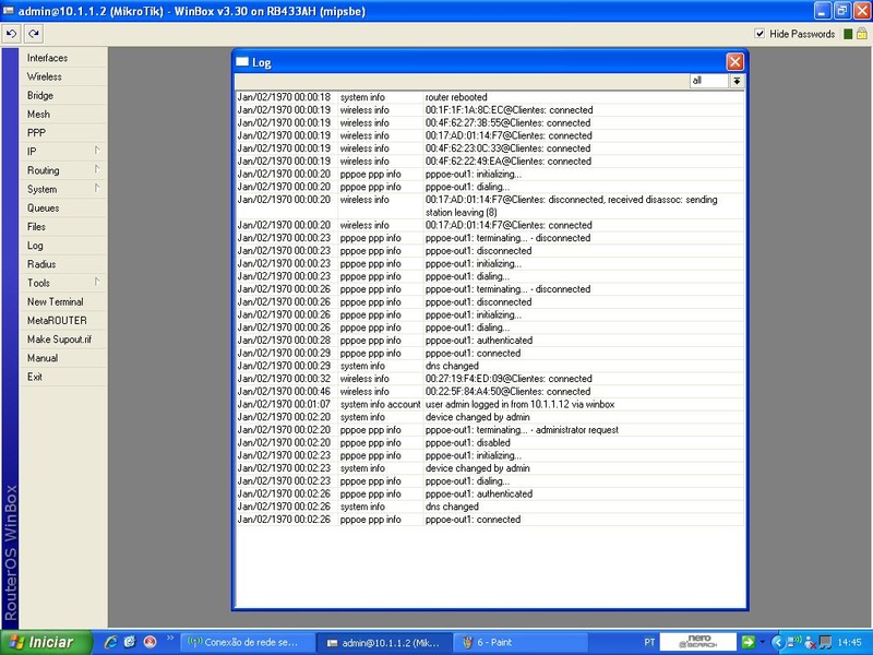 Meu problema é o seguinte, coloquei o modem em bridge, e a mk configurei a ether1 para receber o modem, e a wlan1 para mandar wireless a 5 clientes. (quero q o cliente n precise discar)