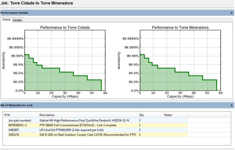Vou simular mais tarde... Já Vi Rocket M5 fechando com 71km 260/160... antenas 1.40cm.. só nao sei dizer quais antenas..... antes eram ums ptp600 foram substituidos por Rocket...Vou procurar os prints...