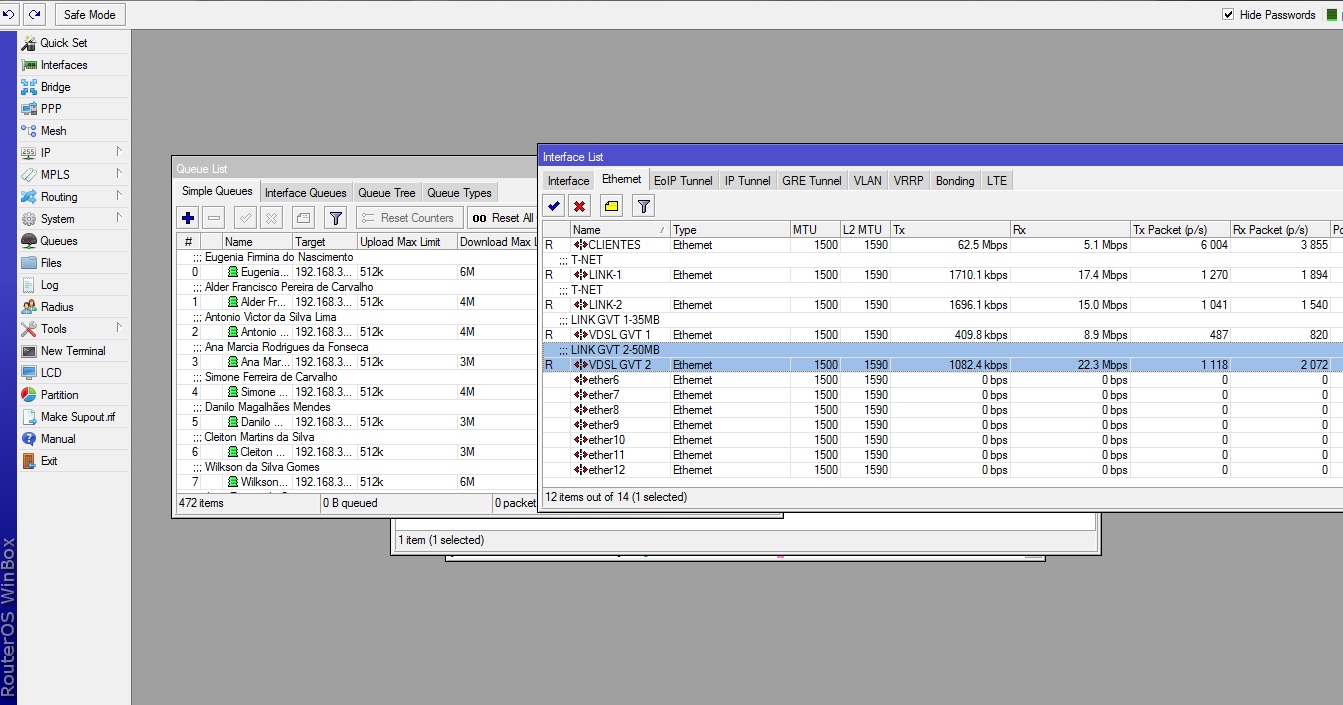 Tou vendo aqui a minha rb 450 ta colando no 100% é muito processamento mesmo com 3 link de 35 megas vdsl
