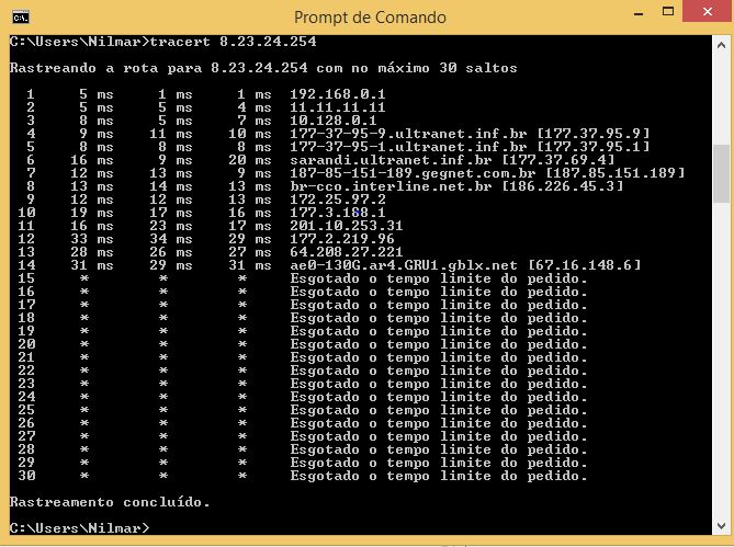 Posta o resultado do tracert para esse ip: 8.23.24.254