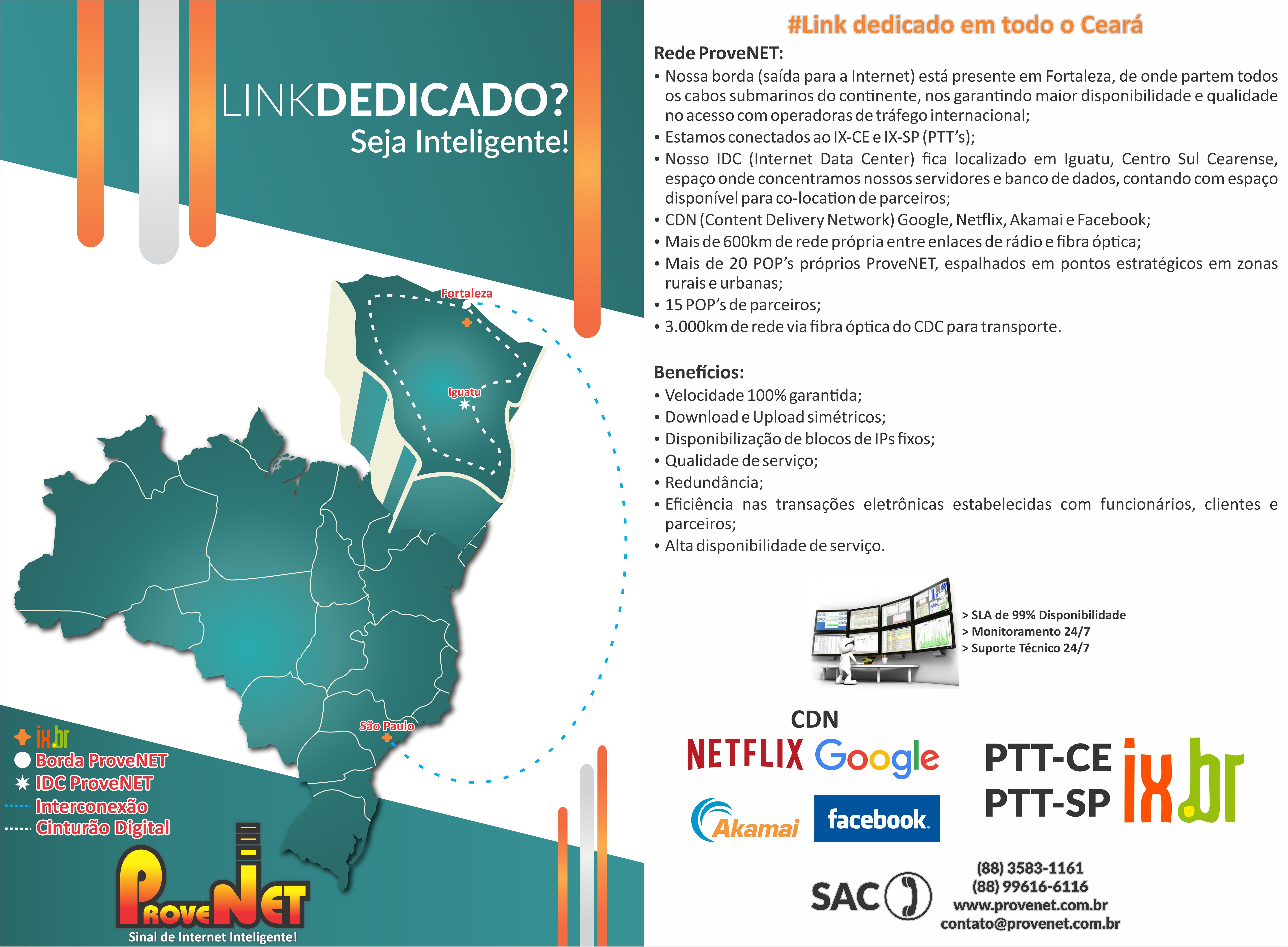 Bom dia pessoal... estou também muito interessado em adquirir um dedicado aqui em minha cidade ( Patos - PB ). As ofertas são muito poucas ou nem tem. Somente um provedor que oferece aqui vindo de outra cidade distante 42 km a R$100,00 o mega. Se por acaso aparece alguém ai que forneça link dedicado aqui para minha região, é só deixar o contato. Obrigado